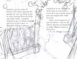 Queríamos representar por un lado a los protagonistas del libro y por otro el espacio donde se desarrolla la historia, un parque donde a los niños no se les permite acceder. Quería mostrar en una sola imagen misterio, intriga, ganas de conocer…