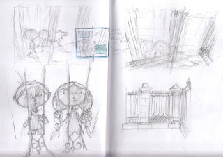 Los tres personajes están a una misma altura, por cierto no muy alta para remarcar lo pequeños que son y me parecía interesante que fuese Gustavino el perro, el que puede acceder libremente al parque pero que no se atreve. Y así damos también personalidad al animal.